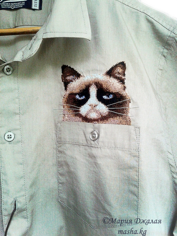 Глаза максимально прорабатываются. Благодаря тому, что кошки могут быть белого цвета, такие узоры легко узнаются и выглядят действительно стильно. Для создания вышивки не нужно прилагать много усилий, однако терпением и усидчивостью придется запастись.
