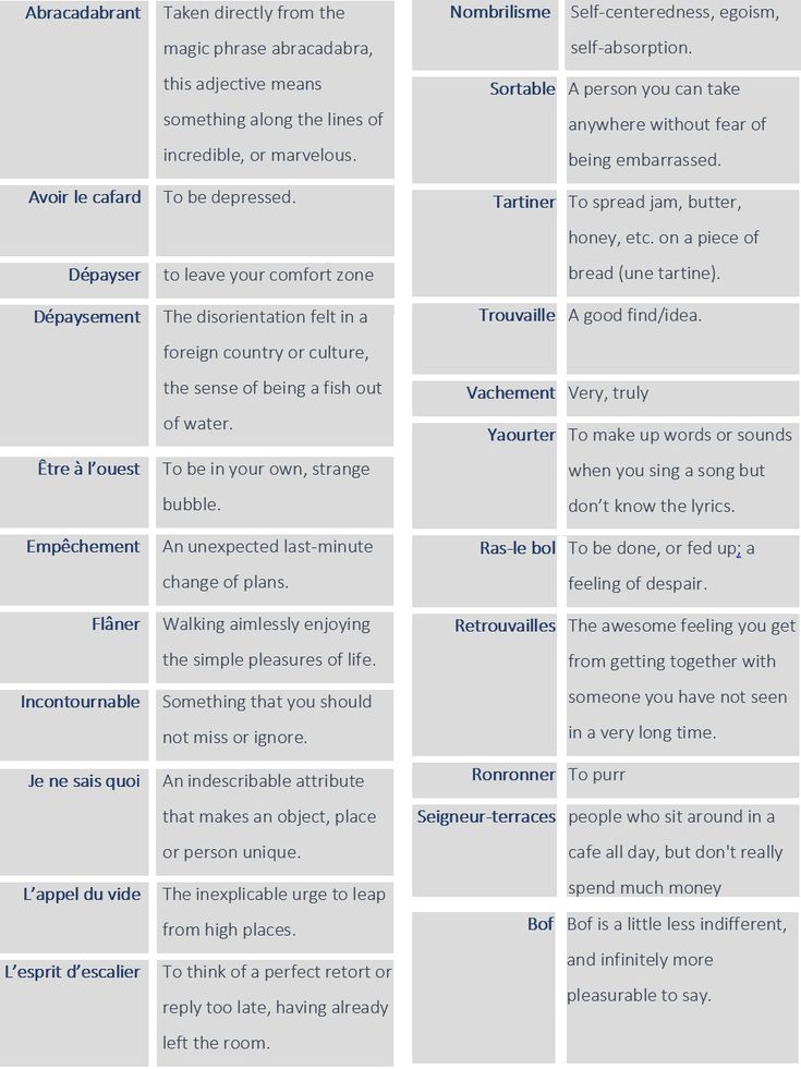 Эти красивые французские слова улучшат весь ваш словарный запас Теперь, когда вы нашли много красивых французских слов для изучения, вы захотите интегрировать их в свой словарный запас. насколько это возможно. Увеличение словарного запаса с помощью этих запоминающихся слов — один из самых важных способов выучить новый язык. Вы обнаружите, что знание этих слов не только поможет вам звучать потрясающе, когда вы говорите на этом романском языке, но и окажется полезным в повседневных разговорах.