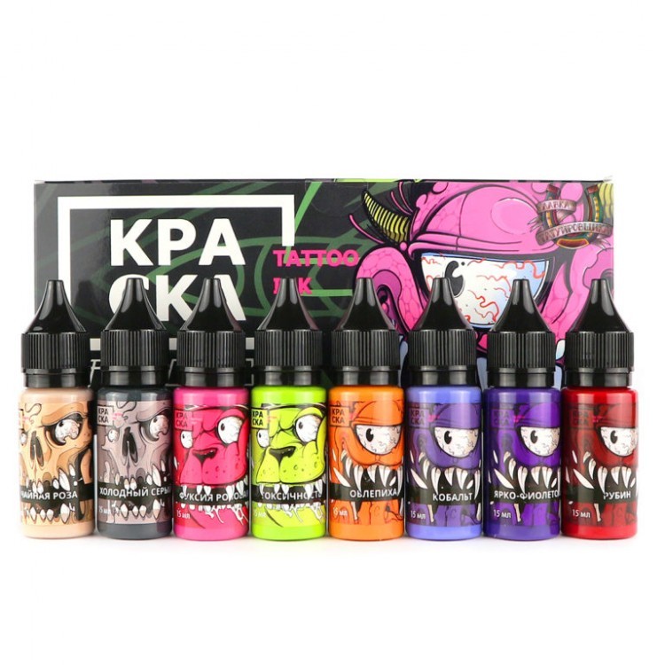 Краска для татуировки – это окрашивающий пигмент, состав которого с эпохи зарождения тату-культуры претерпел кардинальные изменения. Ранее красители создавали из оксидов различных металлов, химических добавок, повышающих яркость и устойчивость к выцветанию. Смешение нескольких татуировочных пигментов позволяет получить новые необычные оттенки и в том числе, оптимизировать определенные свойства красителей. Если ранее черный пигмент создавали из сажи и древесины, белый – из свинца, а красный из ржавчины, то сегодня все иначе.