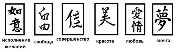 Есть люди, которые не хотят ограничиваться одним словом или одним иероглифом, для этого существуют целые фразы, где используются китайские иероглифы. Фото с переводом таким фраз можно легко найти в интернете, но есть распространённые и всем известные.