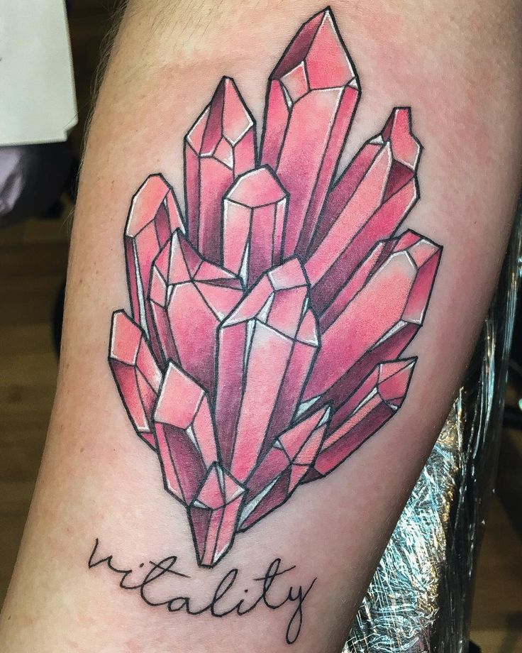 Тату кристалл розового кварца с цветкомТату кристалл зелено-фиолетового флюорита с полумесяцемТатуировка светящегося кристалла аквамарина на руке Еще одна причина, по которой многие люди выбирают хрустальные татуировки, заключается в том, что конкретный камень соответствует рождению их месяца.