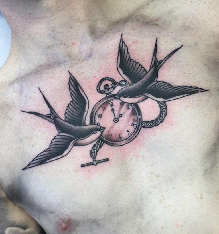 Татуировки с ласточками подходят мужчинам и женщинам и имеют множество значений. Реально же такое изображение обозначает родной дом, защиту от всех трудностей. Более распространённое значение — знак удачи, такая ласточка еще изображается с подковой или клевером с четырьмя листами.
