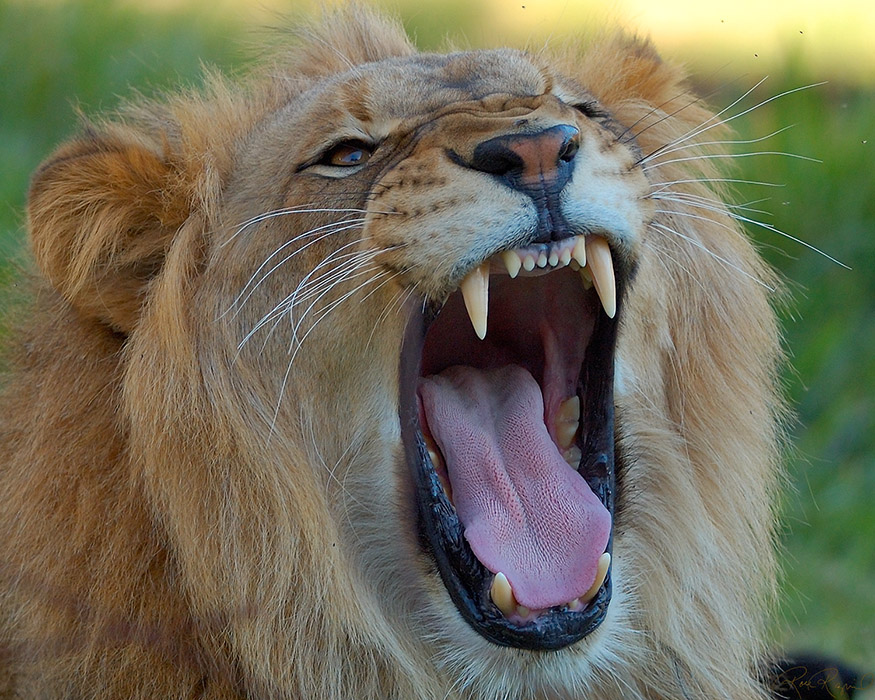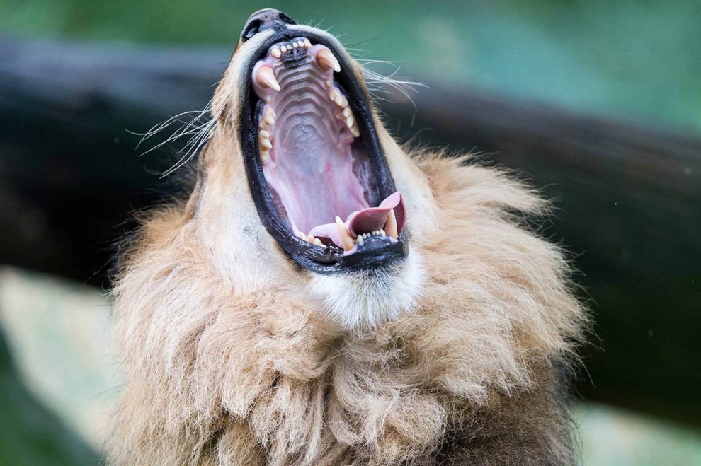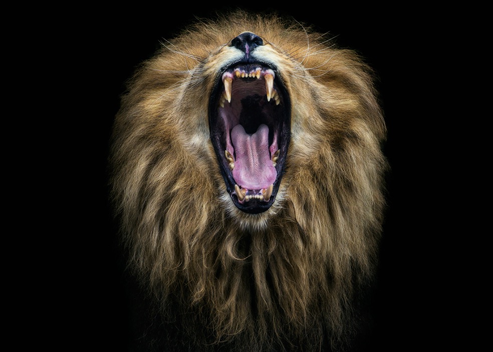 Nahaufnahme des brüllenden Löwen mit weit geöffnetem Maul