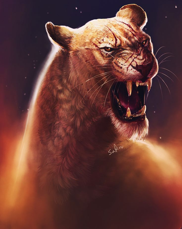 Хотя в этом фильме нет львов, есть много четвероногих диких животных, движения которых можно было бы имитировать, в частности злодейский тигр Шер-Хан. «Было искушение взять слишком много из того, что они сделали, и просто использовать это», — уточнил Дежа. «Я просто вернулся к настоящим львам, насколько мог, к лицу Джереми Айронса и смешал это».