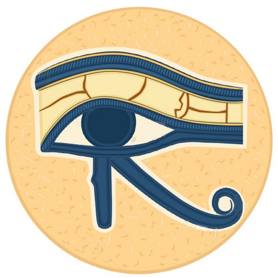 Левый соколиный глаз Гора символизирует Луну, правый – Солнце, спираль – вечную жизнь. Левый глаз был поврежден в схватке с Сетом – и этим объясняются лунный цикл и непостоянные фазы Луны. Всевидящий глаз Гора также соотносился египтянами с Полярной звездой, как с символом озарения. Глаз и бровь – сила и мощь, левый и правый глаз – Север и Юг, Солнце и Луна, небесное пространство.