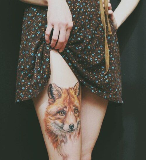 Татуировка на бедре у девушки – лисаТатуировка на бедре у девушки – лиса