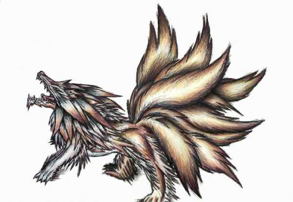 Девятихвостая лисица является священным, божественным животным, но его сложно назвать добрым, белым и пушистым. Легенда повествует нам о том, что в возрасте пятидесяти лет лисица может перевоплощаться в человека, маскируясь таким образом и скрывая свою истинную сущность от окружающих. Когда же это существо отмечает своё столетие, то оно предпочитает перевоплощаться в прекрасную и роскошную женщину либо оракула. Некоторые лисицы принимают облик мужчины, дабы вступить в связь с женщиной. Высочайший ранг лисица приобретает в возрасте тысячи лет. К этому возрасту она становится обладательницей девяти хвостов и великолепного блестящего золотого меха. Голос этой лисицы, а точнее её вой, напоминает плач маленького ребёнка. Проводит свой досуг это существо, охотясь на человека.