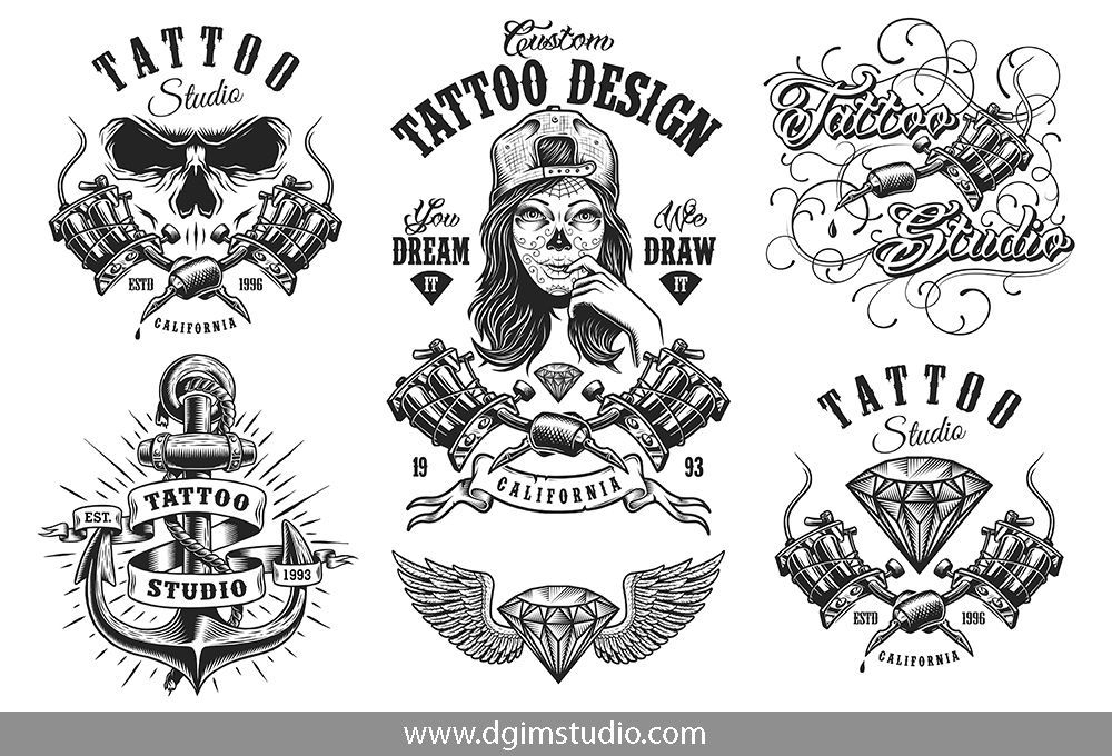 Tattoo Studio Logo Emblem – Illustrationen und Vektorgrafiken