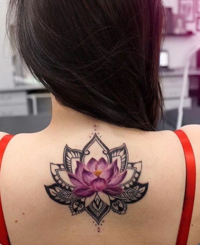 @aliciavalenski (Источник)Сместившись от центра, вы можете создать визуальный интерес к татуировке на пояснице. Этот человек выбрал сочный фиолетовый цвет для своего дизайна цветка лотоса, который явно окупился.