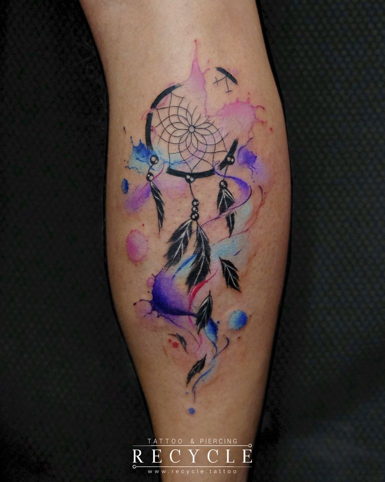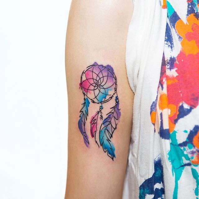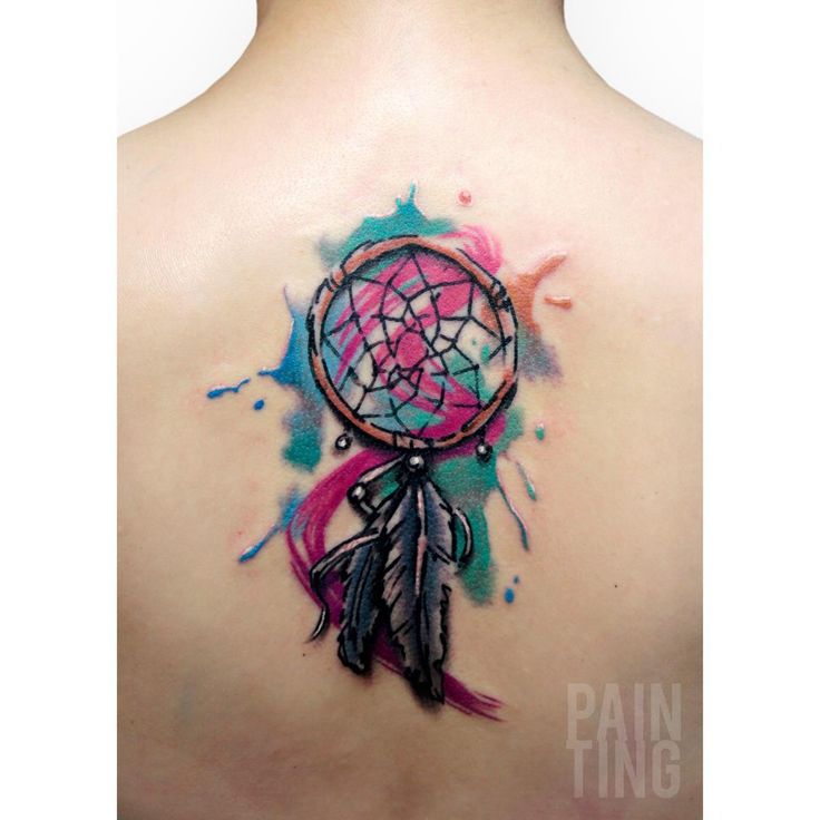 Один из стилей, в которых будет отлично смотреться тату ловец снов — акварель. Акварельные работы выглядят нежными и легкими, яркие краски говорят о жизнерадостности и творческом начале. Прежде чем окончательно выбрать определенный сюжет, просмотрите фото тату ловец снов в каталогах эскизов. Возможно, они помогут вам определиться с подходящим стилем и местом.