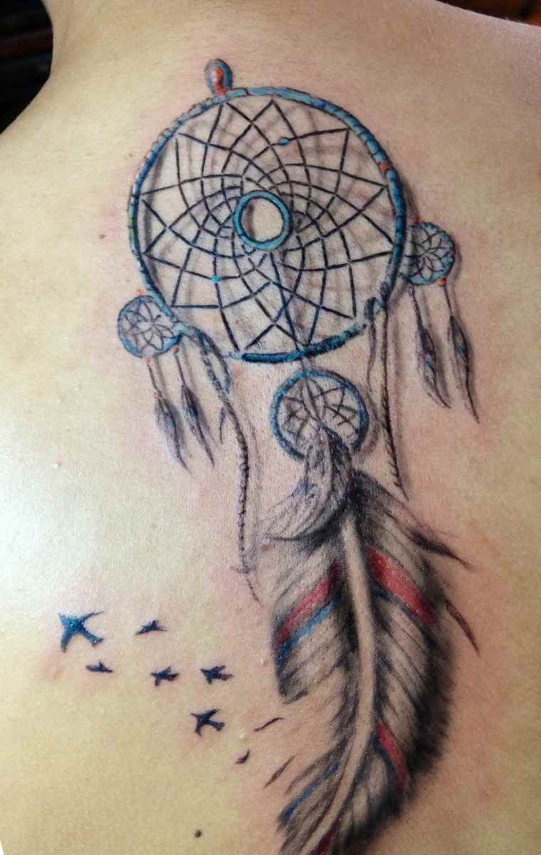 Татуировки с изображением ловца снов люди обычно выбирают в качестве оберега, при чем его сила защищает Вас от множества вещей: недоброго глаза, порчи, отрицательной энергетики. Так же такие татуировки дарят обладателям приятные и спокойные сновидения. Еще одно значение такой татуировки это связь с природой и уважение к давним традициям. Существует мнение, что для того, дабы такая татуировка имела больше положительных сил, ее нужно набивать ближе к голове (шея, предплечье). Но это не значит что ее нельзя набивать на других частях тела, ведь главное что изображение всегда с Вами. Очень красиво смотрится такое изображение на спине, мастер имеет возможность в полной мере передать всю силу амулета, к тому же на такой площади можно добавить и другие элементы (птицы, изображение зверя и так дале).