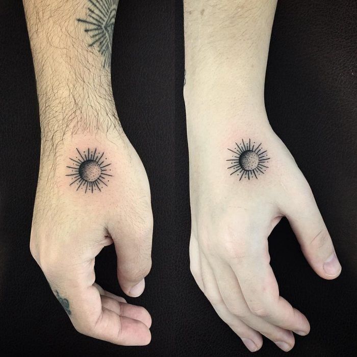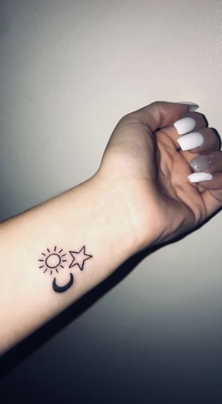 22. Миниатюрные татуировки на запястье «Солнце и Луна»