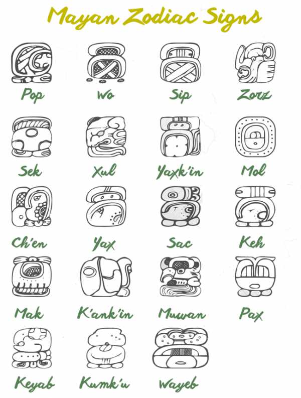 Небольшое примечание: перевод названий знаков Зодиака по календарю Майя может отличаться на различных источниках. Как вы понимаете, однозначной версии перевода на русский язык столь древнего языка нет.