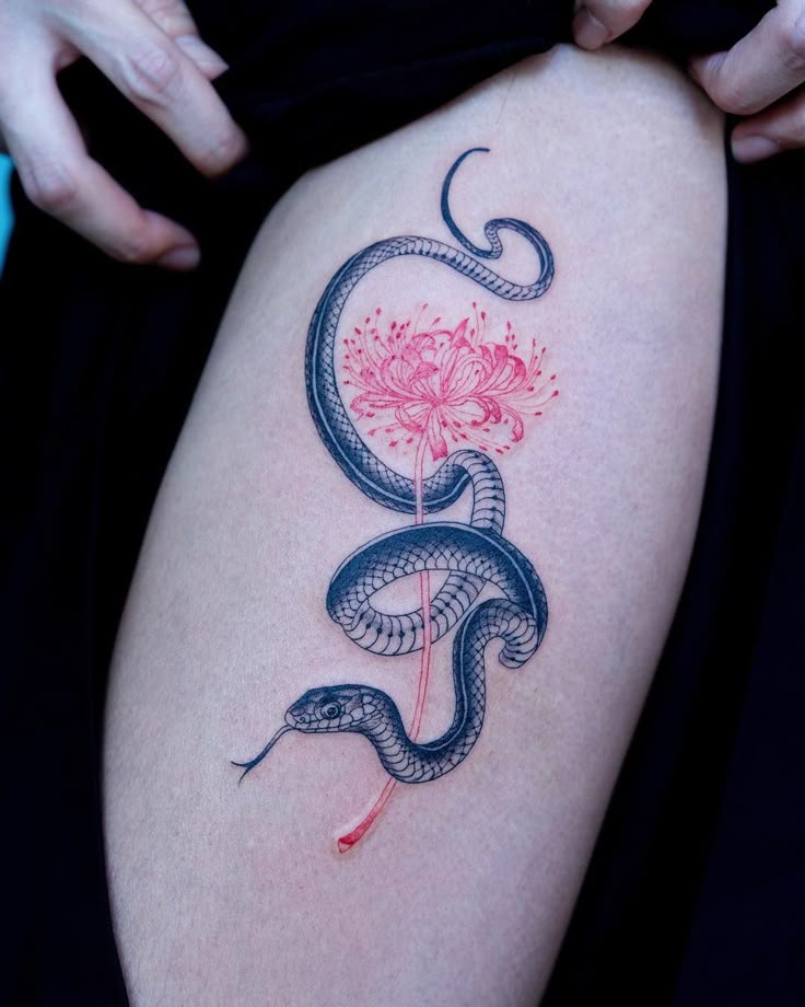 Татуировка в виде змей на бедрах — это фантастическая альтернатива для женщин, которые хотят иметь большую татуировку, которую можно легко скрыть. Кроме того, поскольку ваше бедро является одной из наименее болезненных областей для нанесения татуировки, вы сможете терпеть дополнительное время под иглой.