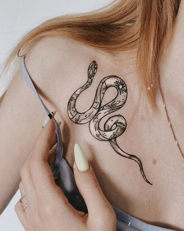 Кстати, значение тату со змеей может изменяться в зависимости от использованных элементов декора или места нанесения.