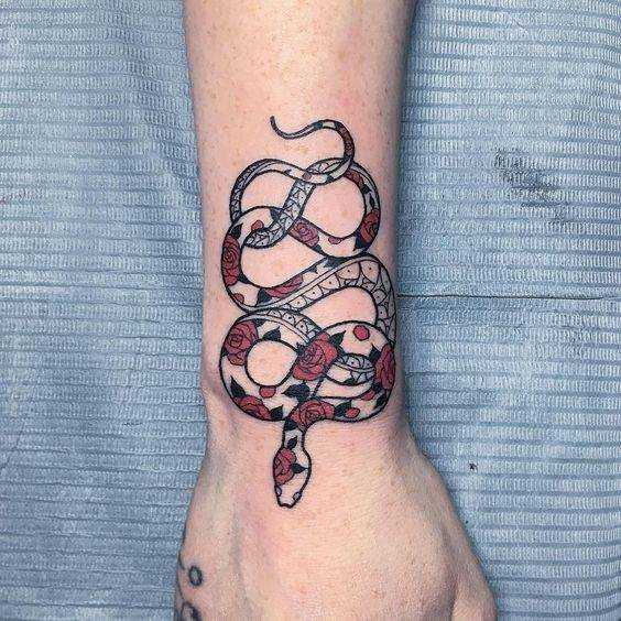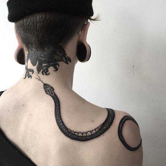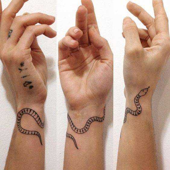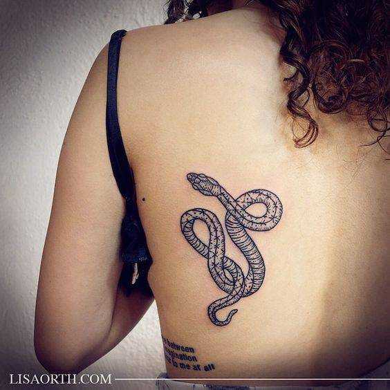Интересно смотрятся маленькие змейки на кисти руки, между лопатками либо на шее.