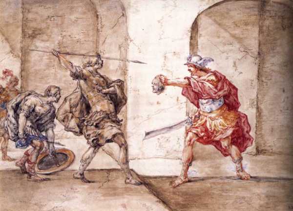 Персей обращает Финея в камень. (1705-1710). Автор: Ricci Sebastiano. Риччи Себастьяно.