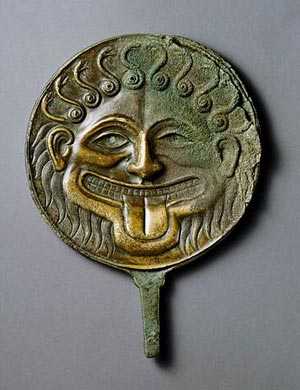 Горгонейон — маска-талисман с изображением головы Медузы, которую изображали на одежде, предметах обихода, оружия, инструментах, украшениях, монетах и фасадах зданий.