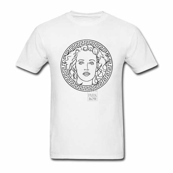 Лицо Медуза Горгона зеленого цвета на черной футболке