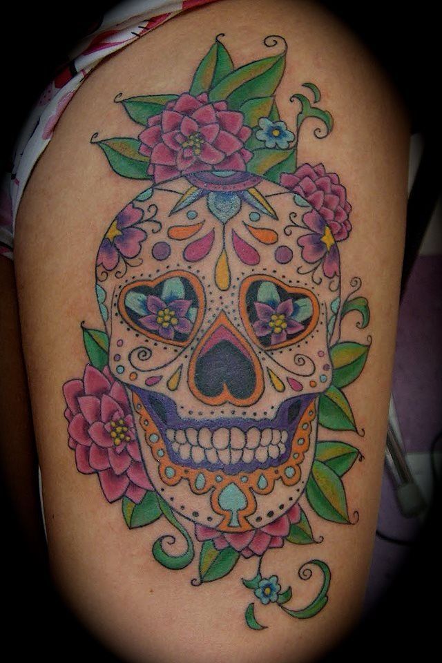 Существуют буквально сотни различных способов сделать татуировку с изображением сахарного черепа. Это забавные дизайны, которые имеют большой характер. Они красочные и забавные, татуировка для тех, кто причудлив и не воспринимает вещи слишком серьезно.