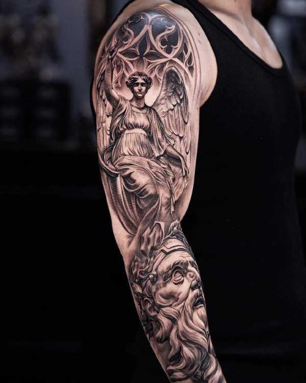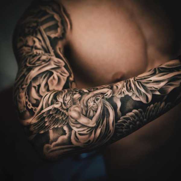 Ангел. Если набить тату на руку с ангелом, оно будет выступать в роли талисмана, охранять владельца от темных сил и наставлять на путь истины. Поэтому, решение о нанесении небесного существа на тело – отличная идея.