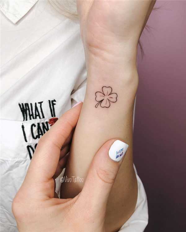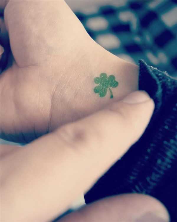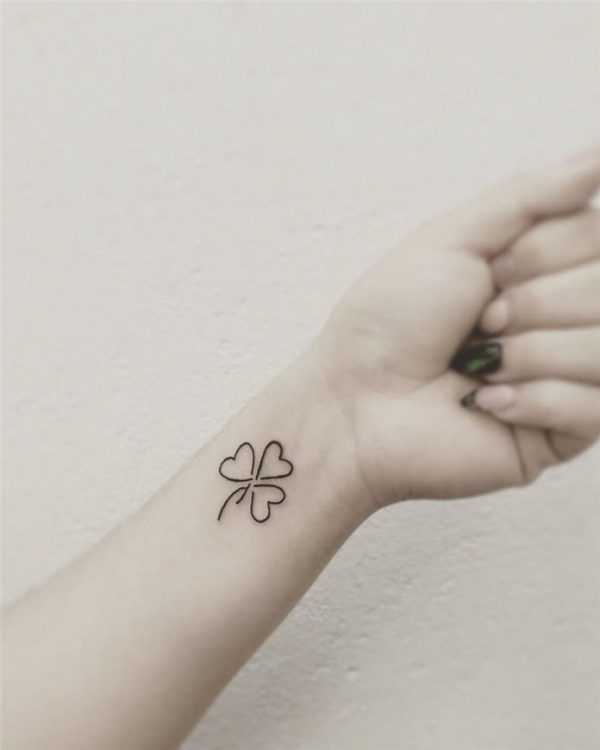 Самые нежные и красивые варианты маленьких тату для девушек будут цветочной стилистики. Последним трендом стали рисунки четырехлистного клевера на руке, особенно в акварельной технике с закрашенными зелеными листиками.