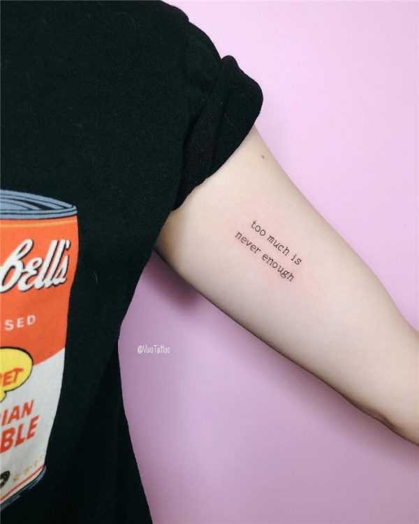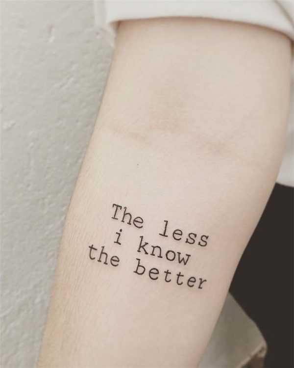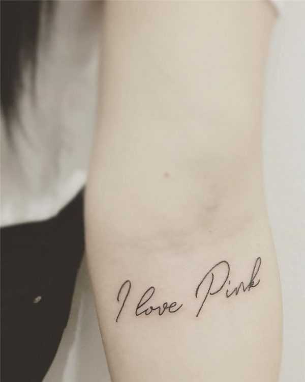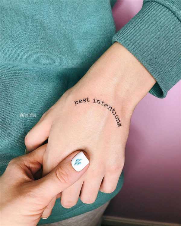 Довольно большой популярностью среди маленьких тату для девушек, которые моно сделать на руке пользуются аккуратные надписи. В зависимости от длины текста красивое тату может пометится даже на фаланге пальца.