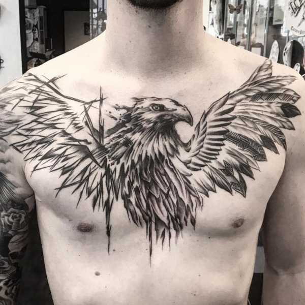Грудь – одно из излюбленных мест тату для парней: на этой части тела имеется достаточно места, чтобы набить все, что угодно. К тому же, мужские татуировки на грудине всегда смотрятся эффектно вне зависимости от того, что на них изображено: животные, крылья, ангелы или узоры.