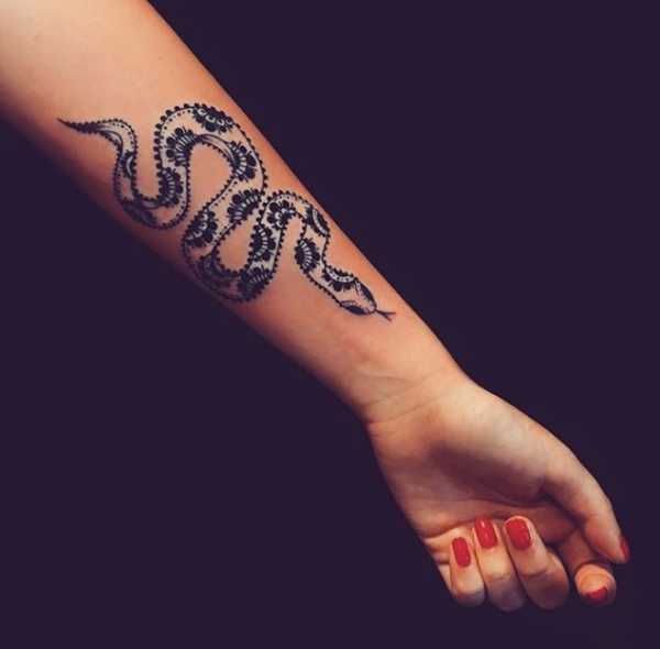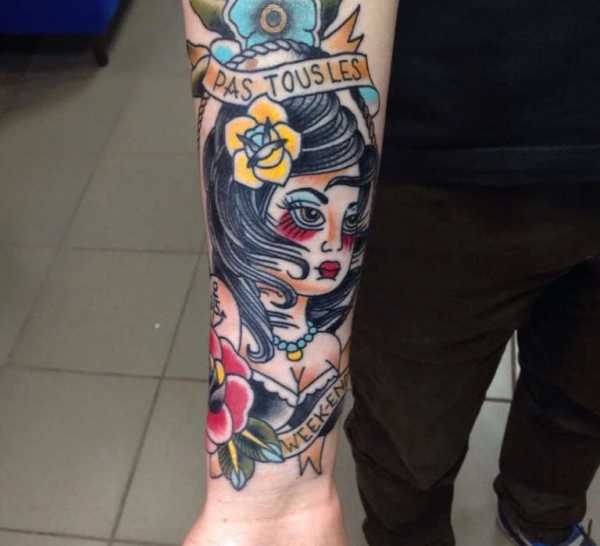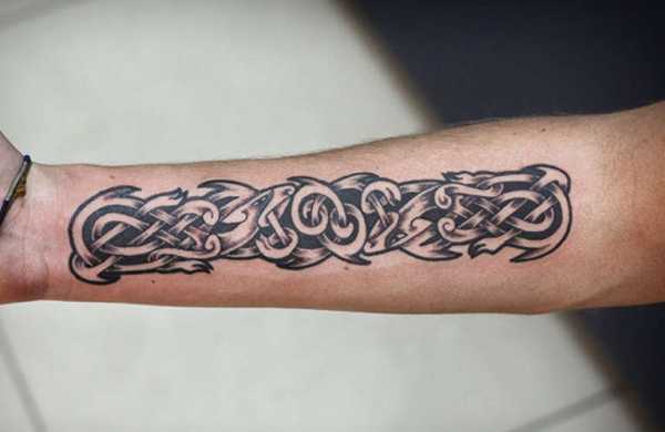 Как и в предыдущем варианте, на предплечье чаще исполняют тату эстетического подтекста, крупные рисунки, композиции из нескольких персонажей и символов, сложные эскизы. Уместны здесь надписи и цитаты, орнаменты, растительные элементы и звери.
