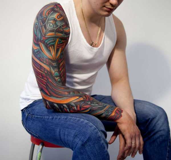 Рукав – самый популярный вид нанесения наколки для мужчин, так как предполагается покрытие практически всей руки сразу. Это огромный холст для реализации фантазии мужчины, что благоволит созданию интересных, сложных и объемных эскизов. Рукава – это, скорее, молодежные варианты татуировок.