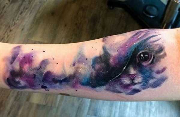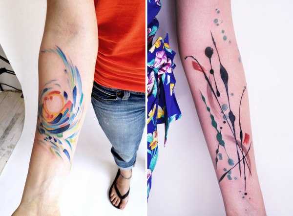 Еще одна модная тенденция этого сезона, которая заслужила у модниц большую любовь. Смотрится акварельное тату очень нежно и легко, ярко и местами эксцентрично. Такие рисунки действительно напоминают живопись и выглядят так, словно их легко можно смыть водой. Во многом они являются выбором девушек, любящих привлекать к себе внимание и исследовать что-то новое.
