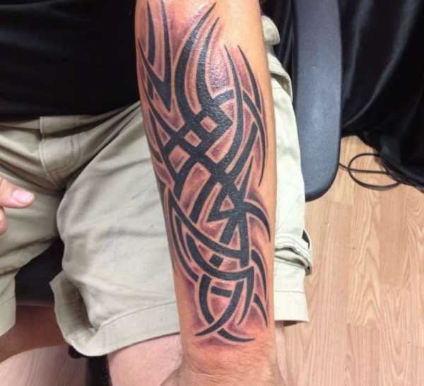 Идеи мужских тату бесконечны: выбор рисунка зависит лишь от собственных предпочтений. Многие парни предпочитают на носить на руку племенные узоры в стиле трайбл. Это мощные конструкции из узоров, которые придают мужчине брутальность и привлекательность.