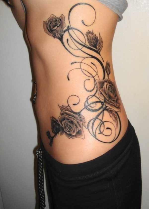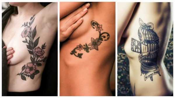 - Сбоку на ребре. Ещё одно излюбленное место для татуировок. Здесь дамы предпочитают выводить утончённые узоры средней или совсем крохотной величины. Но, сразу следует отметить, что набить татуировку на боку будет достаточно болезненно. Поэтому если вы излишне восприимчивы к боли, то лучше рассмотреть другие подходящие места, где рисунок будет смотреться не менее соблазнительно.