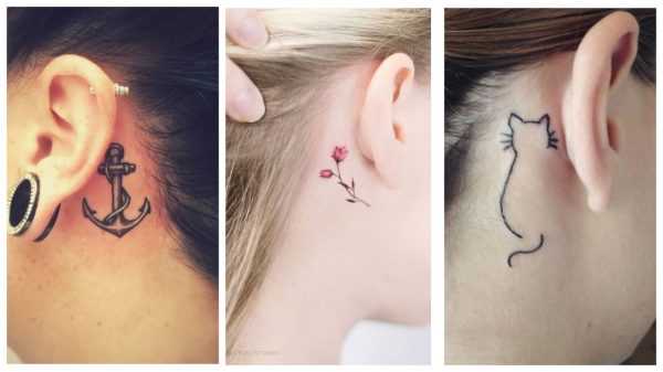- За ухом. В этом потайном местечке чаще всего делаются маленькие, но очень сакральные татуировки. Они словно говорят о какой-то тайне своей обладательницы, интригуя и привлекая внимание. Также неоспоримым плюсом размещения тату за ухом станет то, что ее можно легко скрыть, распустив волосы.