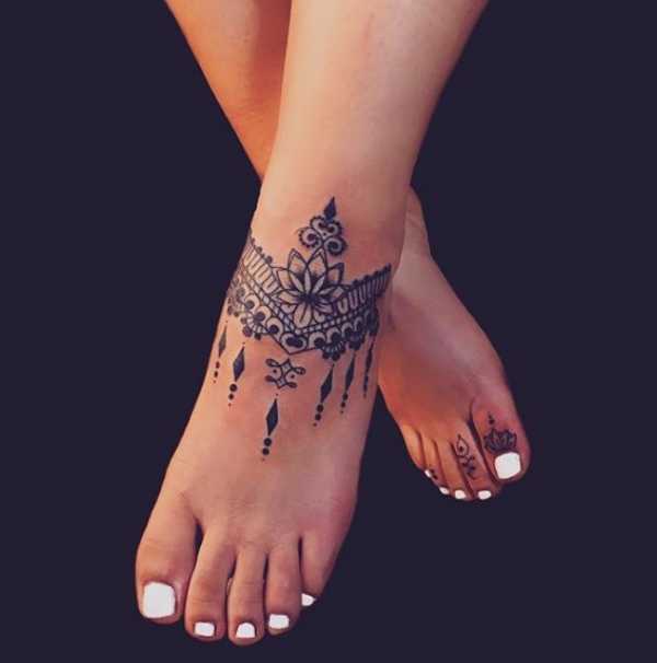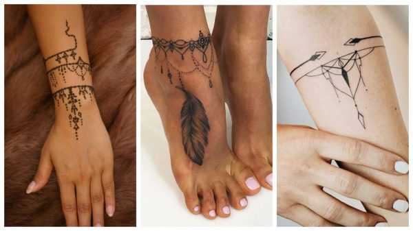 - Запястья и щиколотки. Все любительницы утонченных рисунков знают, что тату на щиколотке или запястье всегда будет смотреться изящно и мило. Именно поэтому многие барышни охотно рисуют на своих конечностях тонкие браслеты, которые прекрасно вписываются в любой современный образ.