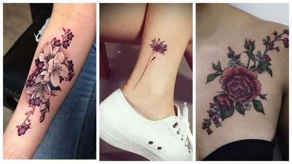 Пожалуй, чаще всего на своём теле девушки изображают именно цветы. И в первую очередь потому, что они позволяют им проявить свою женственность. Как правило, цветочные бутоны смотрятся очень изящно и выразительно. А особенно красиво раскрываются на теле цветные татуировки.