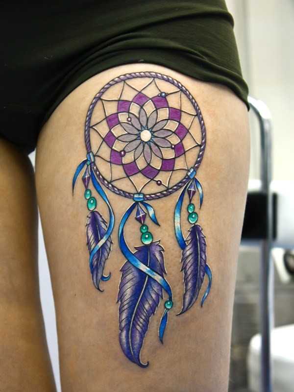 Вообще, рекомендуется наносить ловец снов поближе к голове, например, в область шеи, за ухом или на плече. Однако многие охотно изображают его в качестве тату на бедре, на боку или на внутренней стороне руки. По сути, это не столь важно, главное, чтобы обладательница татуировки верила в неё и в её защитные свойства.