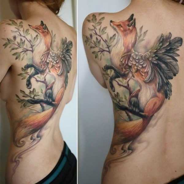 Другими востребованными мотивами у мужчин являются изображения хищников, птиц, фантастических героев и девушек. Их наносят как на всю спину, так и на трапецию.