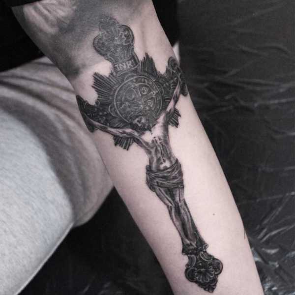 Крест. Благодаря своему поразительному и символическому значению, татуировки в виде креста у мужчин являются одними из самых востребованных.