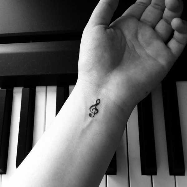 Музыкальные символы. Выражение любви к искусству с помощью татуировки имеет особое значение для мужчин с настоящей страстью к музыке. Музыкальные ноты, тексты песен и различные инструменты – это всего лишь несколько вариантов возможных идей.