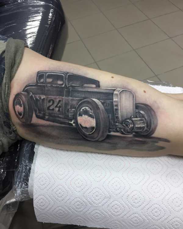 Автомобили. Мужчины были одержимы автомобилями с момента их изобретения и, по совпадению, многие любители автомобилей также ценят красивые татуировки.