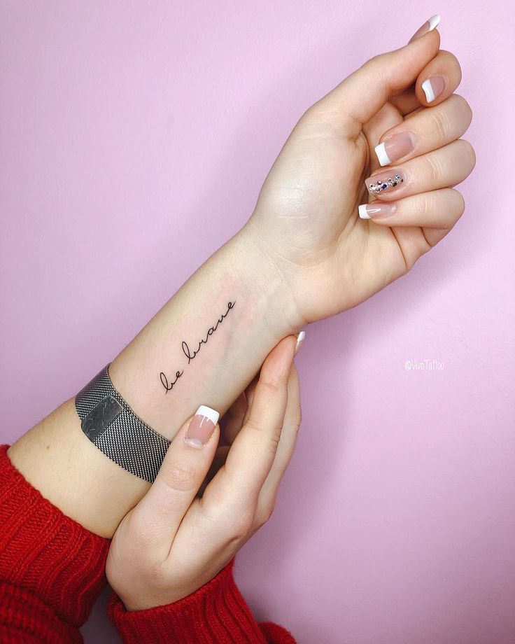 Выполняют чаще всего тату на руке для девушек в виде очень тоненьких надписей, изящных изображений стрелы, ласточки, пера, одуванчика, совы, хрупкого цветка.