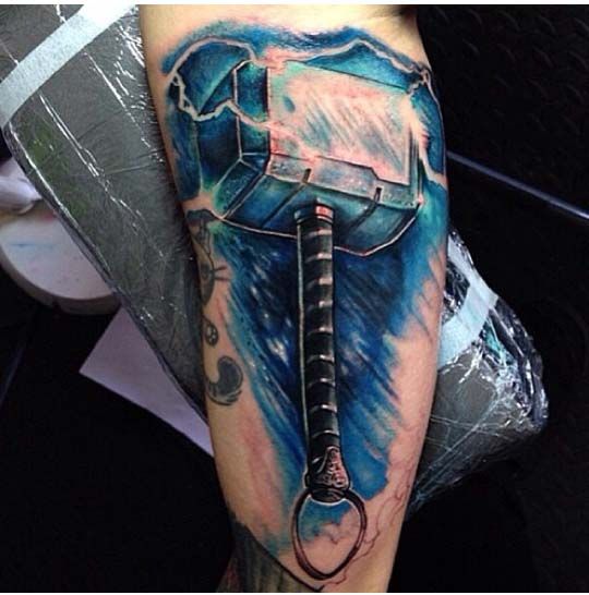 Источник: Instagram @lorenaswy_tattoo. . В том, что кажется данью этому событию, цветное и довольно простое произведение искусства рассказывает больше об истории, чем просто об искусстве.Маскировка молота Тора
