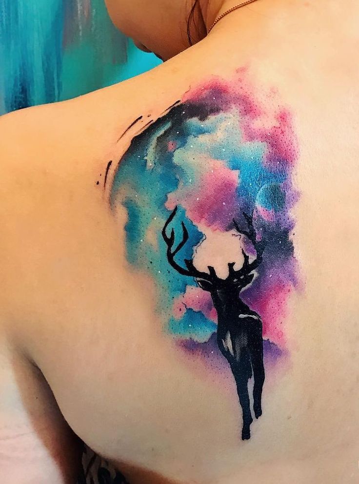 Татуировка в стиле акварель – простор для фантазии мастера. В художественном рисунке можно выразить любую эмоцию, сочетать необычные цвета. Нет строгих сюжетных рамок, можно создать как прекрасный орнамент, завораживающий своими линиями, так и конкретный образ.