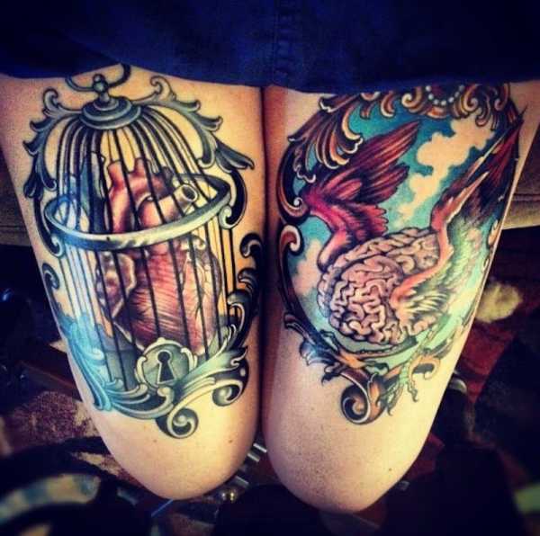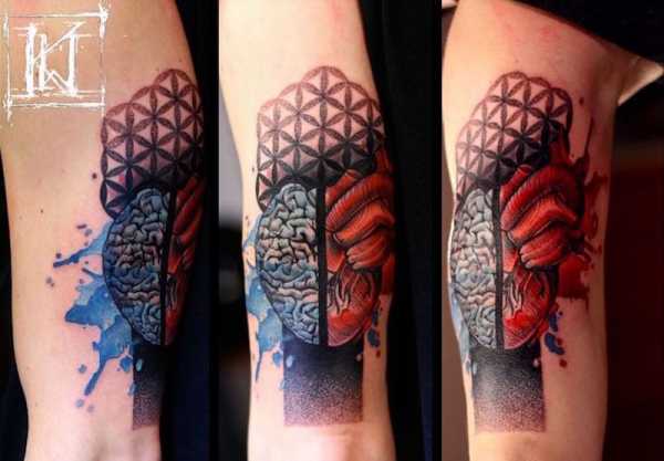 Мозг в сюжете татуировки часто изображен в связке с сердцем, что символизирует вечное противостояние жизни «умом» и «чувствами».