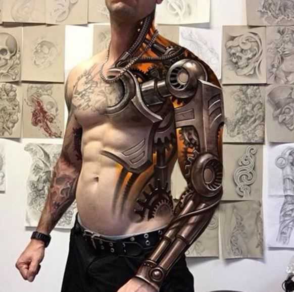 Очень часто анатомические тату соединяют с биомеханикой и тогда получается совсем круто
