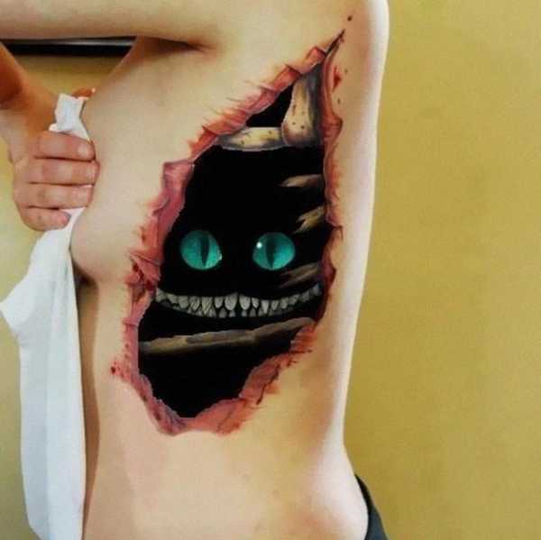 Для любителей творчества Кэрролла чеширский кот, выгравированный на теле, придется по душе.