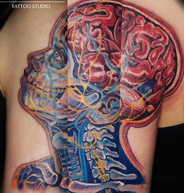Мозг – важнейший орган человеческого тела, который нельзя заменить или перезапустить, который определяет ваше сознание, интеллект, мышление и который никогда не перестаёт учиться. Конечно, изображение умнейшего органа – зрелище пикантное, но это не смогло остановить любителей анатомической татуировки!