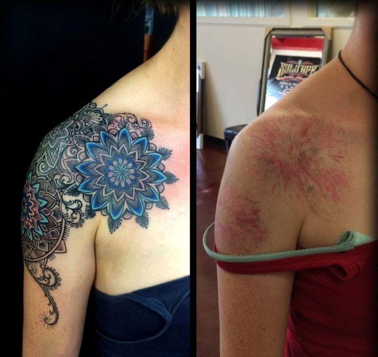 Если старая татуировка большая, яркая, то перекрыть ее светлыми оттенками не выйдет, только черным. А готовы ли вы носить черную или очень темную тату решать вам.