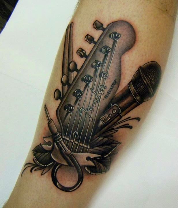 Музыкальные татуировки популярны не только у меломанов — сделать музыкальную татуировку выгравировать могут сами музыканты. Гитары, а точнее электрогитары, являются наиболее часто татуируемыми музыкальными инструментами. Люди, которые делают татуировку на музыкальном инструменте, наверняка сами на нем играют и хотят везде брать с собой. Вы можете сделать татуировку на любом музыкальном инструменте на своем теле — клавиатуре, скрипке, микрофоне в сопровождении музыкальных нот или даже на чем-то менее традиционном, например, на аккордеоне или волынке.